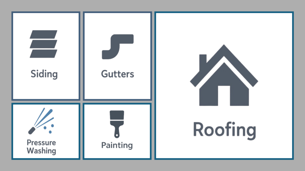 | Roof Repair | Inspection → Estimate → Repairs → Final Check | ✔ Stops bigger issues ✔ Affordable & quick ✔ Skilled craftsmanship ✔ Durable fix |